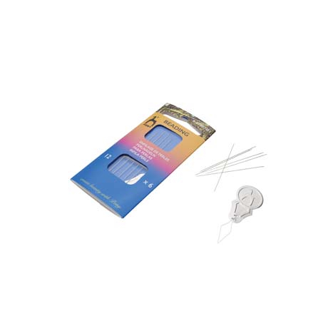 Sada 6 kusů extra tenkých korálkovacích jehel Pony velikosti 12 s navlékáčkem