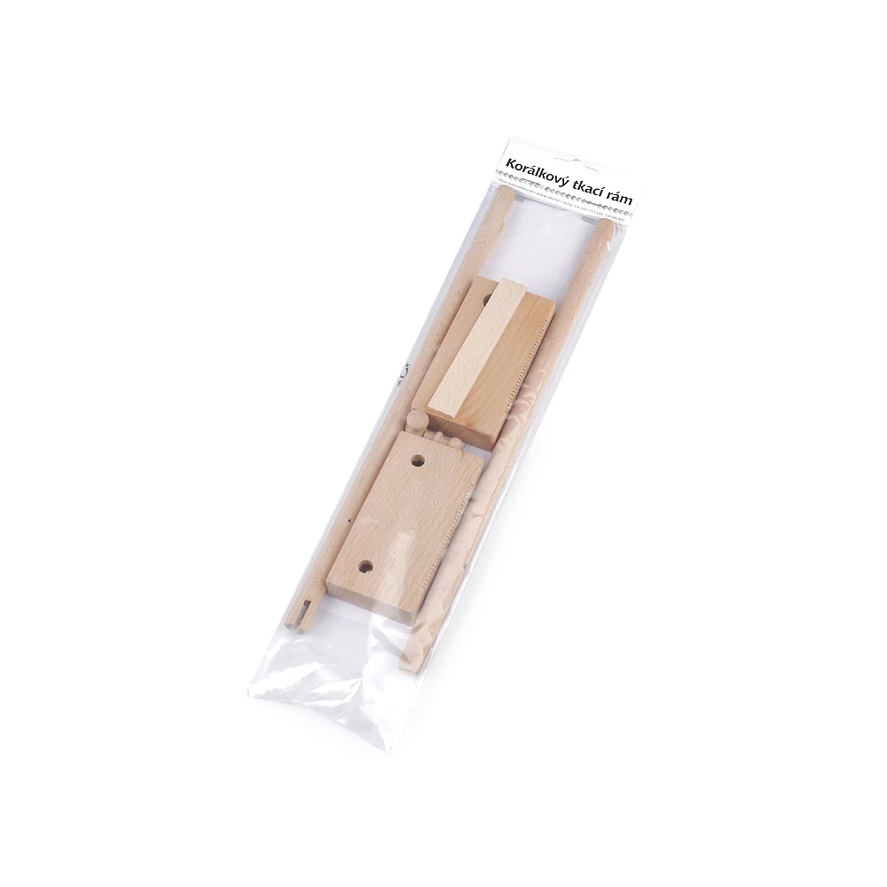 Tkací rám je vyroben z dřeva a má řadu drážek pro navlečení niti. Na rám se napíná nit, po které se následně navlékají korálky. Díky pevnému základu rámu můžete přesně a systematicky tvořit vzory s korálky.