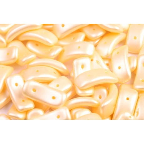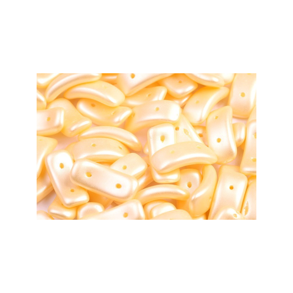 Jemná krémová barva s perleťovým odleskem a unikátní prohnutý tvar o rozměrech 3,5 x 15,5 mm otevírají dveře k nekonečným možnostem designu. Tyto skleněné korálky se dvěma otvory umožňují vytvářet složité prostorové struktury a elegantní vlnovky. Krásně se kombinují s drobným rokajlem Preciosa 5/0 nebo většími variantami, jako je rokajl Preciosa 6/0, čímž dodají vašemu šperku hloubku a dynamiku.