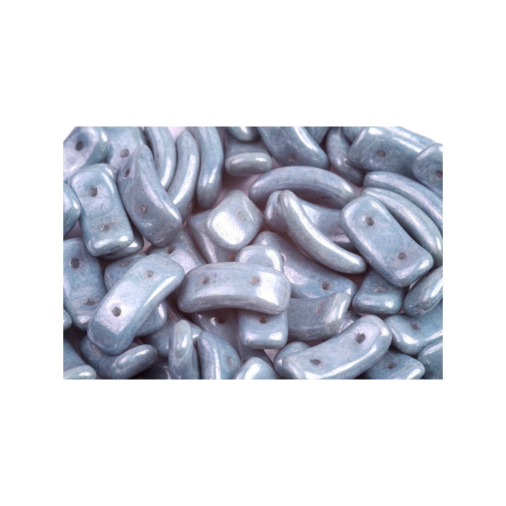 České skleněné korálky v odstínu White Alabaster s povrchovou úpravou Blue Luster vynikají svým specifickým prohnutým tvarem, který v ploše i prostoru připomíná elegantní mašli. Rozměr 3,5 x 15,5 mm je ideální pro vytváření plastických struktur, vlnovek a zajímavých geometrických vzorů v náročných bižuterních projektech, kde je kladen důraz na detail.