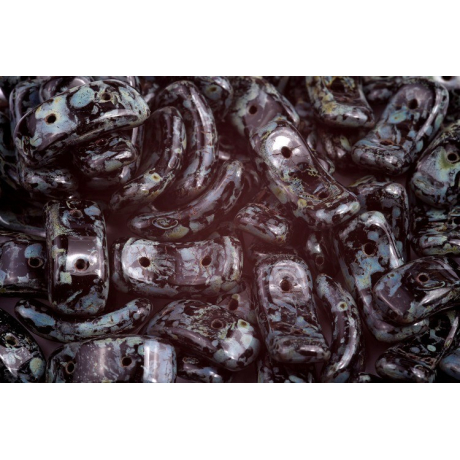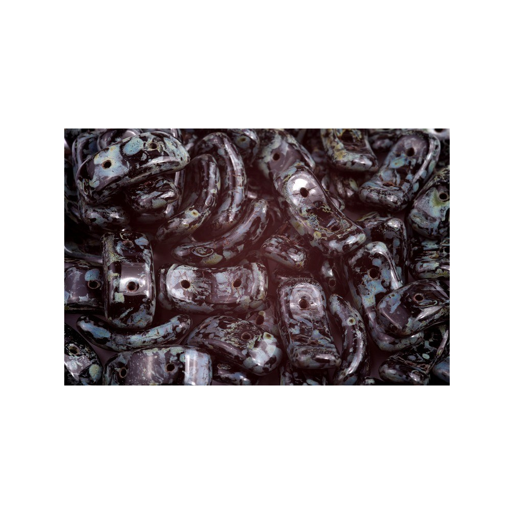 Dvoudírkové perle PRECIOSA Bow™ 3,5 x 15,5 mm Black Opaque, Travertine 23980/86800
