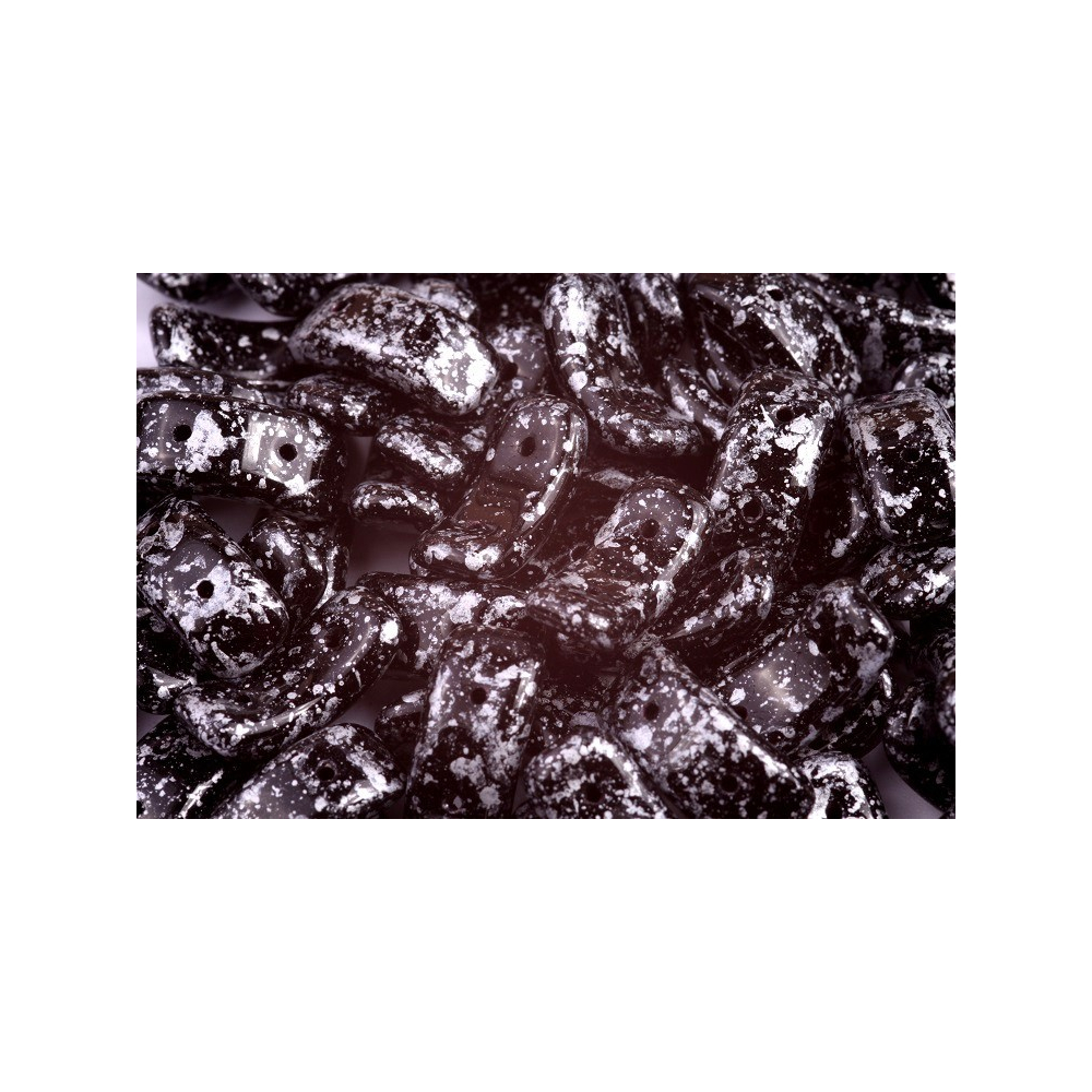 Dvoudírkové perle PRECIOSA Bow™ 3,5 x 15,5 mm Black Opaque, Granite Silver 23980/45702