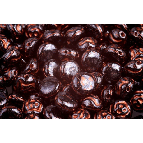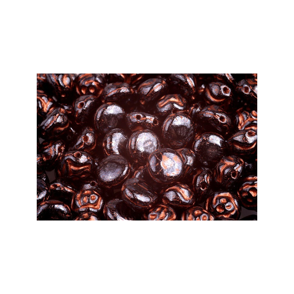 8mm průměr a nízký profil kabošonu definují tyto dvoudírkové korálky Preciosa Candy™ Rose, které patří mezi nejoblíbenější mačkané tvary z dílny Preciosa. Rozteč otvorů o velikosti 0,7 mm je navržena pro precizní lícování v náročných šitých projektech, kde je vyžadována stabilita tvaru. Skleněný základ s povrchovou úpravou Copper Capri Painted vykazuje vysokou estetickou hodnotu a dodává šperkům starobylý, metalický nádech s hlubokým leskem.