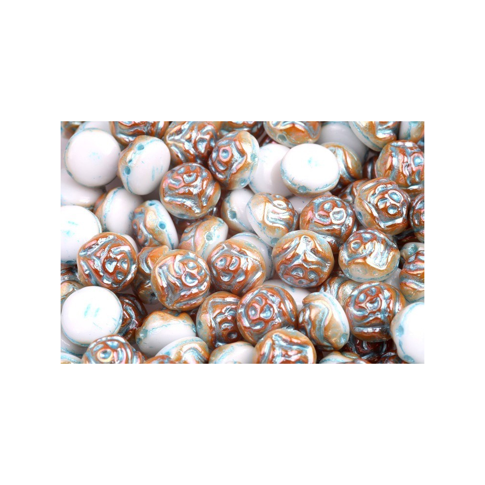 Tradicí vonící sklářské dílny v srdci křišťálového údolí daly vzniknout unikátnímu tvaru Preciosa Candy™ Rose, který v sobě nese eleganci rozkvetlé zahrady. Tyto české skleněné korálky o průměru 8 mm v jemném provedení bílá s meruňkovým a modrým nádechem představují vrchol řemeslného umu značky Preciosa. Každý kus je opatřen detailním reliéfem růže, jenž dodá vašim šperkům hloubku a romantický nádech typický pro tradiční bižuterii.