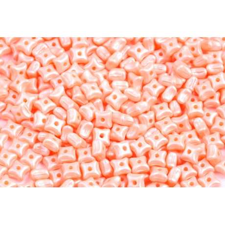 Pastelově broskvová barva s jemným perleťovým odleskem definuje tyto korálky Orion o rozměru 3x5 mm. Jejich specifický tvar připomínající stylizovanou hvězdičku nebo čtverec s prohnutými stěnami umožňuje vytvářet fascinující textury a prostorové efekty. Tento materiál ze skla v odstínu 02010/29303 vnáší do každého projektu nádech elegance a jemnosti, která je pro českou bižuterii tak typická.