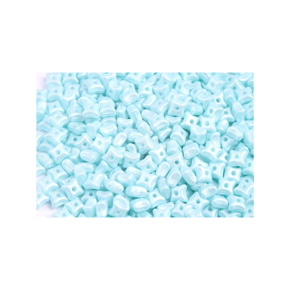 Akvamarínový odstín s jemným perleťovým finišem definuje tyto skleněné Orion korálky o rozměru 3 x 5 mm. Díky preciznímu zpracování z dílny Preciosa disponují středovým otvorem o průměru 0,7 mm, což umožňuje pohodlné navlékání na většinu standardních materiálů. Tento specifický tvar se čtyřmi cípy nabízí zajímavé geometrické možnosti při skládání plochých i prostorových vzorů pro profesionální šperkařství.