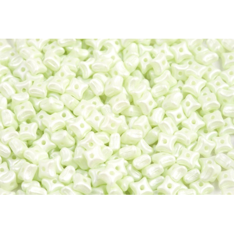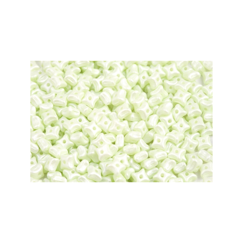 Rozměry 3x5 mm a specifický hvězdicovitý tvar korálků Preciosa Orion v perleťovém odstínu POWDER GREEN PEARL (kód barvy 02010/29315) představují prvotřídní české sklo s jemným povrchovým leskem. Vnitřní průtah o velikosti 0,7 mm je ideální pro vícenásobné provlékání při tvorbě prostorových šperků, kde se tyto korálky skvěle kombinují s rokajlem Preciosa 11/0 nebo broušenými ohnovky (broušené korálky) pro dosažení bohaté textury a hloubky designu.