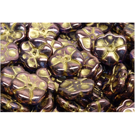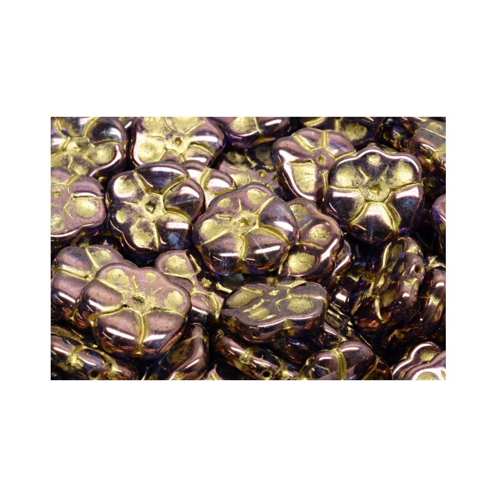 Fialová barva v kombinaci s luxusním zlatým dekorem definuje tyto české skleněné korálky ve tvaru květů. Korálky Petrklíč s povrchovou úpravou Vega přinášejí do světa korálkování nádech elegance a vintage stylu, který je v současném šperkařství velmi žádaný. Díky preciznímu zpracování v dílně rodinné firmy Rutkovský se stávají dominantním prvkem každého autorského díla.