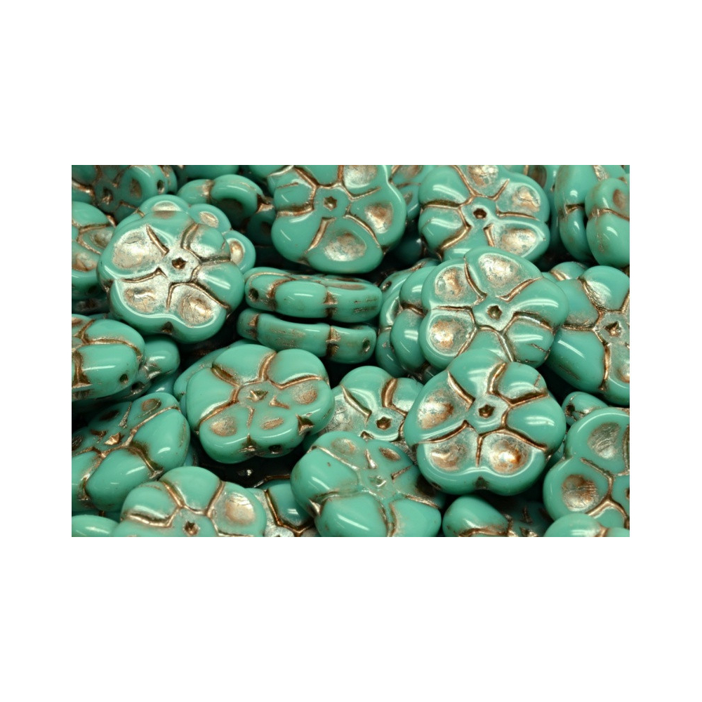 Primrose Beads 15x15 - Petrklíč OPAQUE GREEN TURQUOISE/COPPER 63130-54324