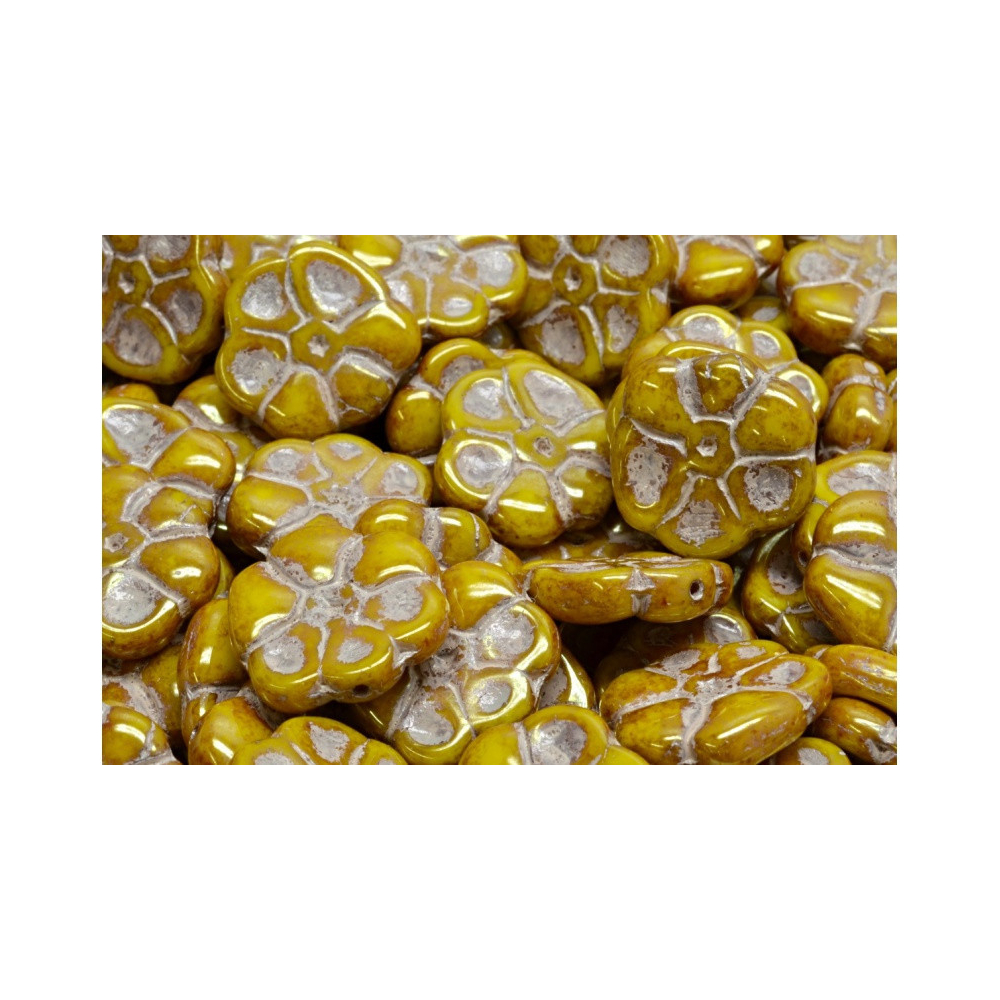 Hořčicově žlutý odstín s jemným perleťovým odleskem evokuje rozkvetlou jarní louku a přináší do vaší tvorby hřejivou energii. Tyto precizně tvarované české skleněné korálky ve formě rozkvetlého květu jsou ideálním středobodem pro romantické náušnice i bohaté náhrdelníky. Každý okvětní lístek je detailně vykreslen, což dodává výslednému šperku profesionální a luxusní vzhled, který ocení i náročné autorky.