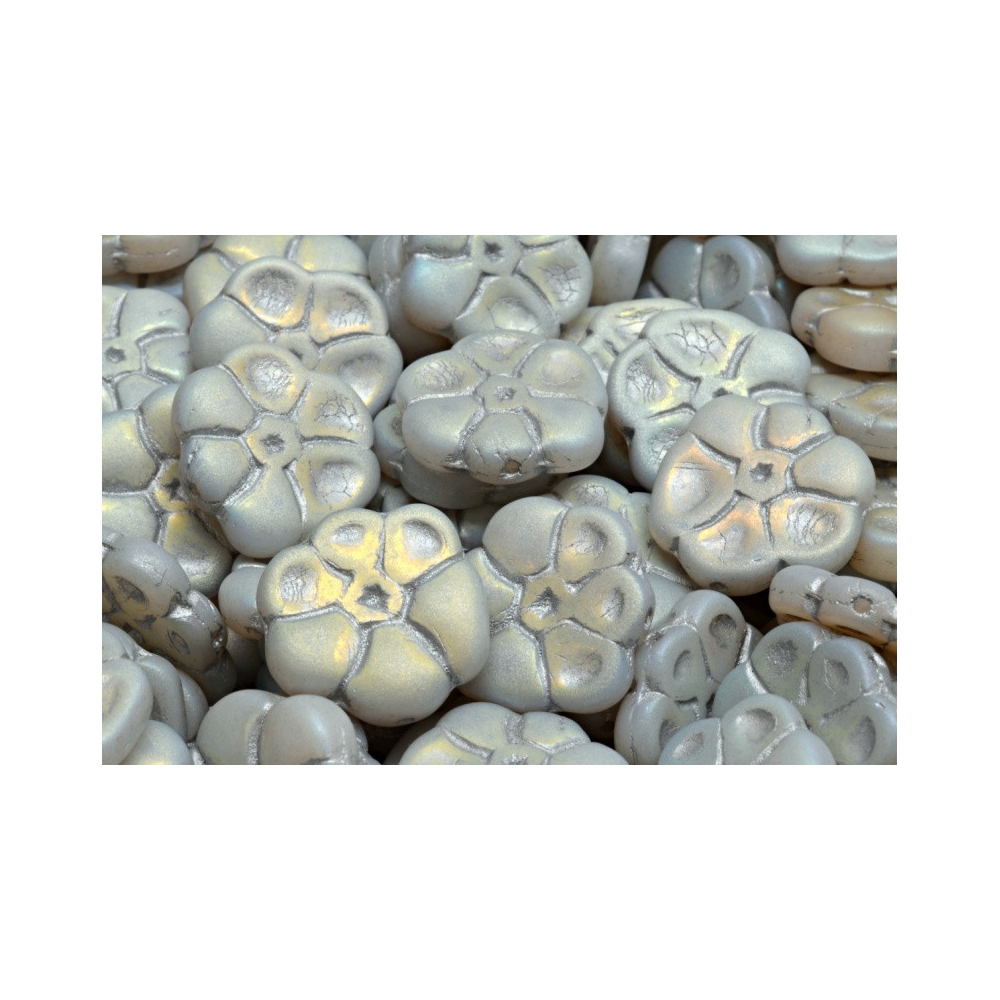 Primrose Beads 15x15 - Petrklíč White Alabaster MAT Opal Ab GREY DECOR 02010-84100-28703-54301