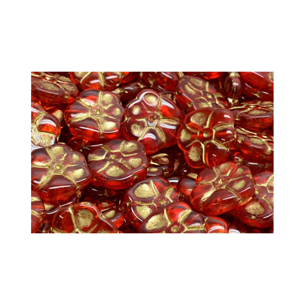 Průhledné červená sklo s jemným zlatým zdůrazněním detailů okvětních lístků vytváří fascinující hru světla při každém pohybu. Primrose Beads 15 x 15 mm od tradičního českého výrobce Rutkovský vynikají precizním zpracováním a plastickým reliéfem, který působí velmi přirozeně a elegantně na jakémkoliv typu šperku.