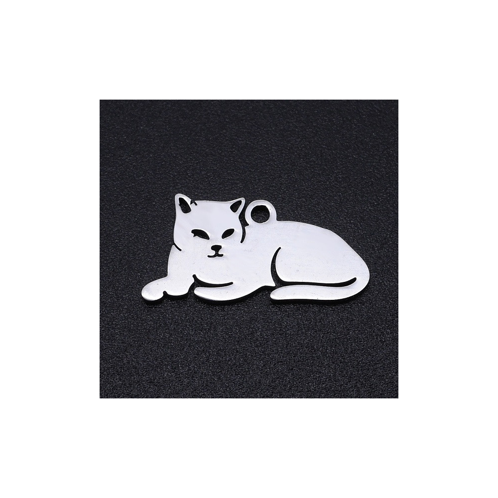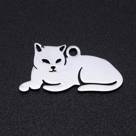 Tento nádherný přívěsek ve tvaru ležící kočky je vyrobený z nerez kovu a má jemnou světle šedou barvu, která se elegantně vyjímá na jakémkoliv náramku. Jeho kompaktní rozměry 9.5x19x1 mm z něj dělají ideální volbu pro jemné i výrazné náramky.