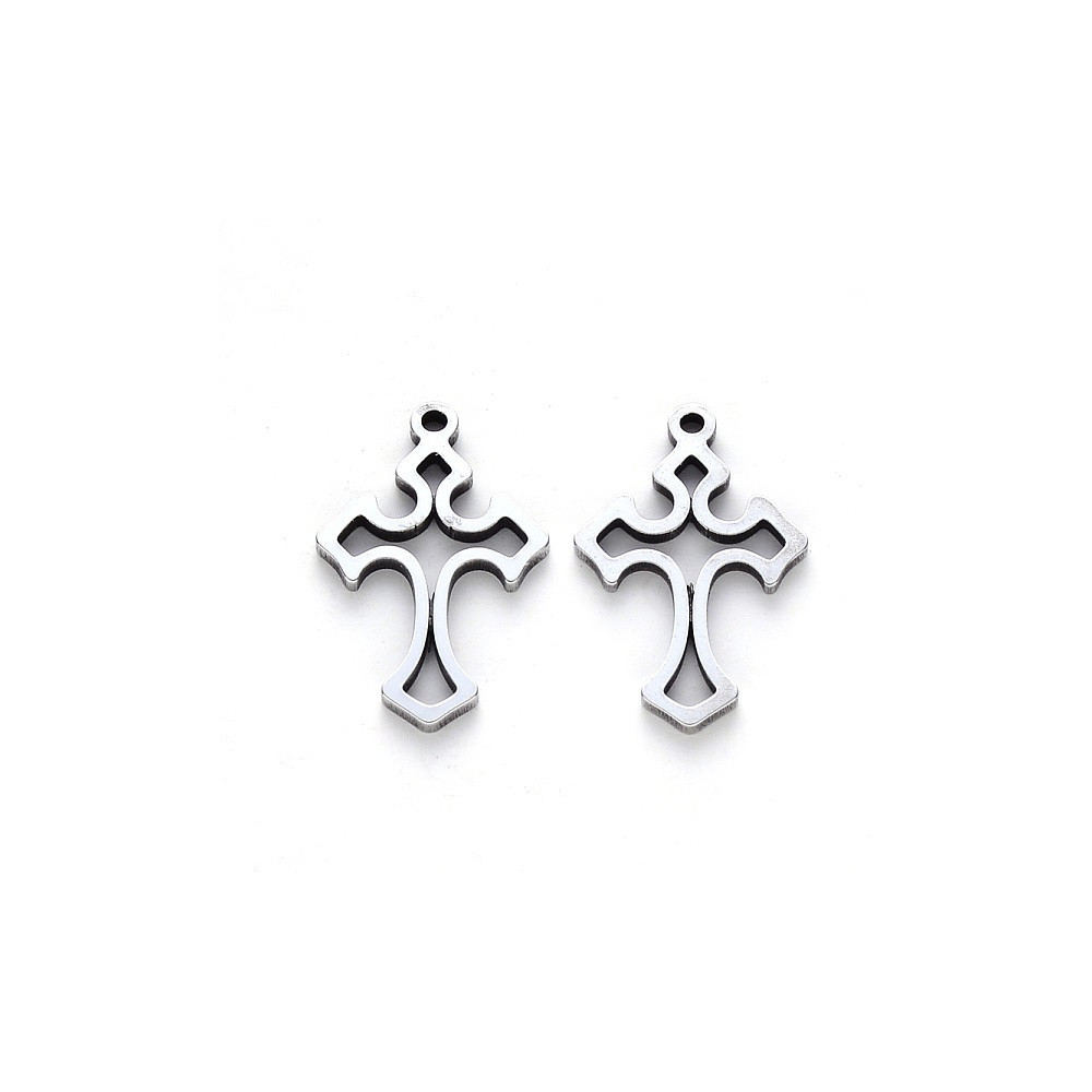 Vytvořte náramek s hlubším významem s tímto elegantním přívěskem ve tvaru křížku. Vyrobený z kvalitního světle šedého nerez kovu, tento přívěsek kombinuje tradiční symboliku s moderním designem. Jeho kompaktní rozměry 19x12x1 mm z něj dělají diskrétní, avšak výrazný doplněk pro den i noc.