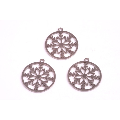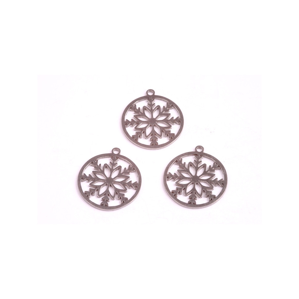 Představujeme vám přívěsek ve tvaru sněhové vločky, pečlivě vyřezávaný a zasazený v kruhu, který dodá vašim šperkům zářivý dotek zimní kouzelnosti.