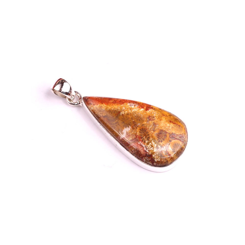 Minerální kabošon Fossil Coral zasazený ve stříbrném rámečku o ryzosti 925/1000