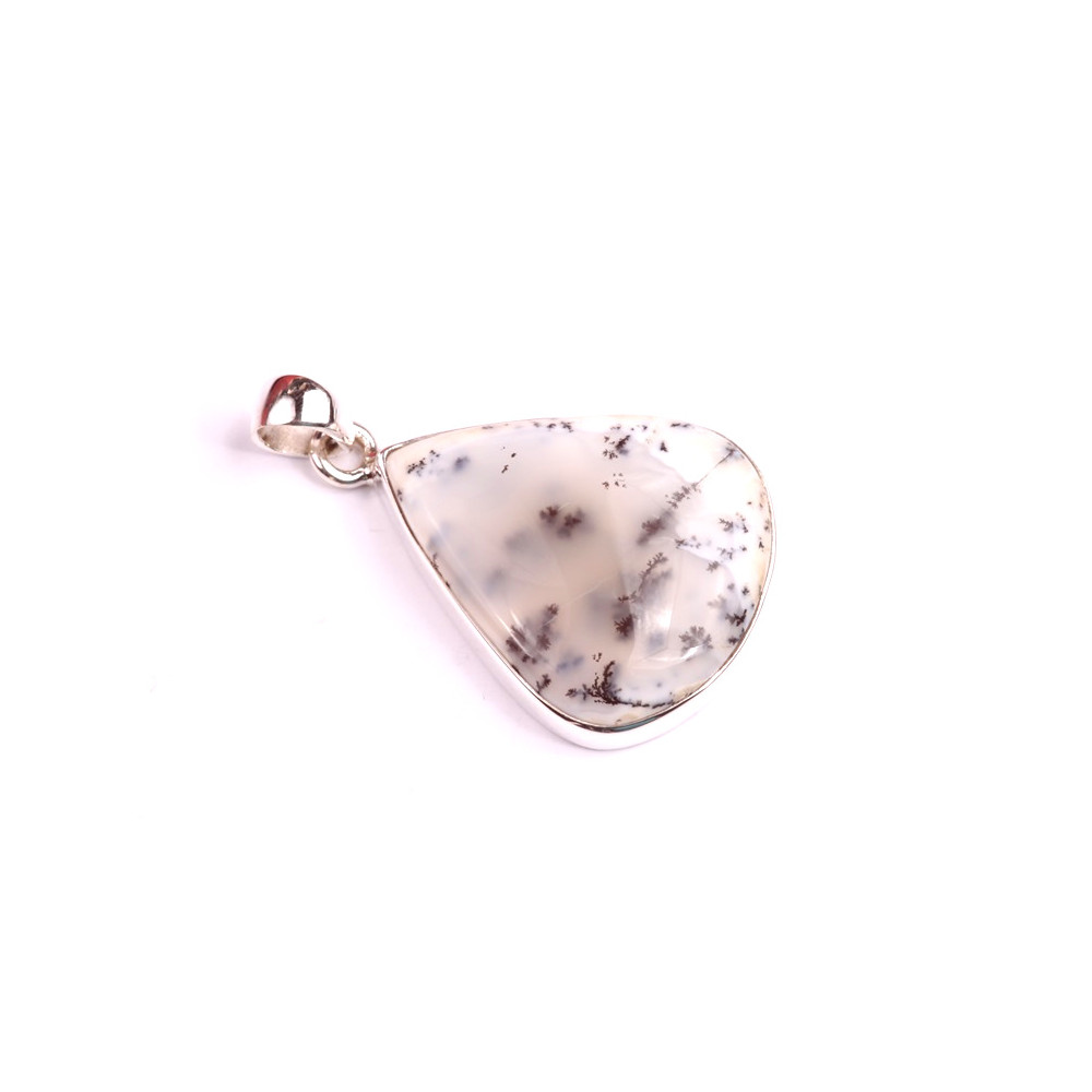 Tento jedinečný přívěsek z minerálu Dendrite Opal je dokonalým spojením přírodní krásy a precizního zpracování. Dendritický opál je známý svými jemnými vzory připomínajícími větvičky stromů nebo kapradin, které vytvářejí neopakovatelné umělecké dílo přírody. Tento minerální kabošon je zasazen do stříbrného rámečku o ryzosti 925/1000, který elegantně doplňuje jeho přirozenou krásu.