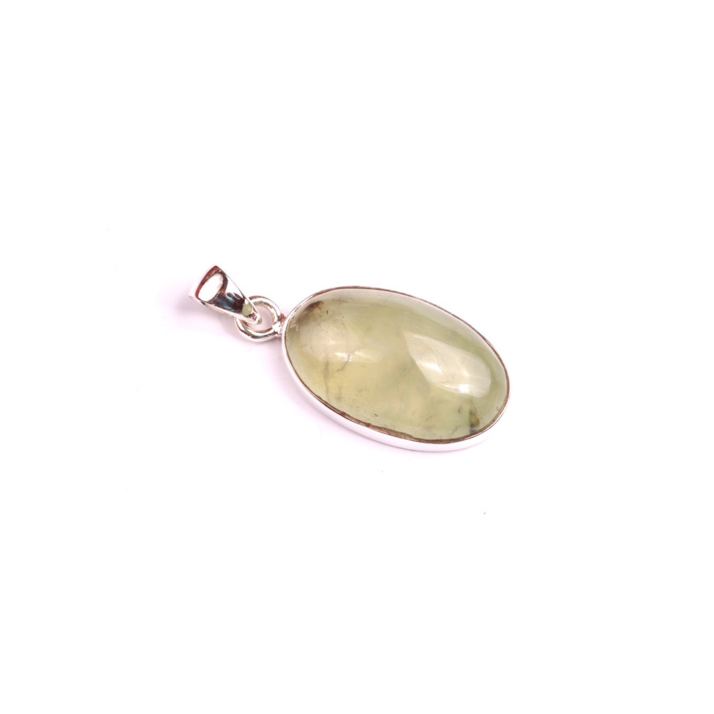 Minerální kabošon Prehnite zasazený ve stříbrném rámečku o ryzosti 925/1000