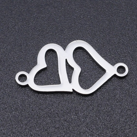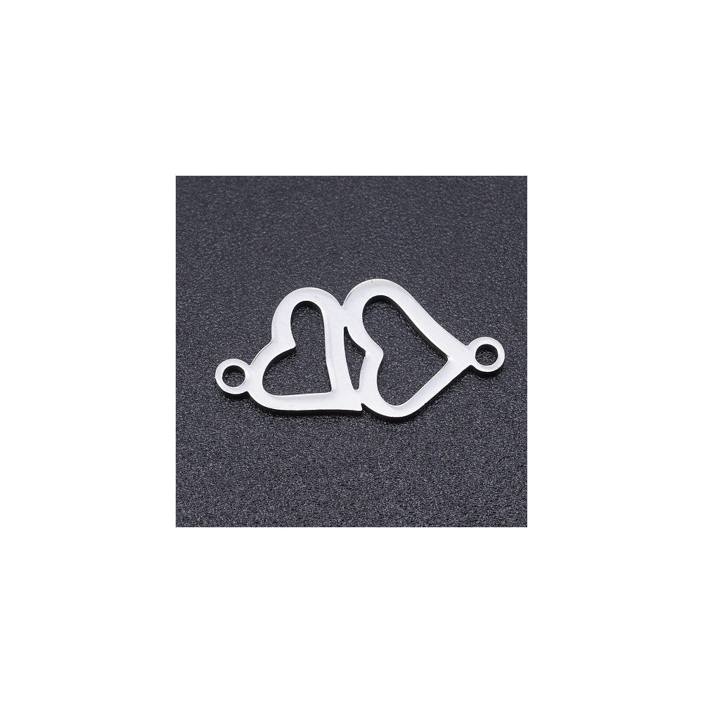 Kovová propojka do náramků dvě propojená srdíčka s dvěma očky Velikost 31.5x12.5x1 mm Balení: 1...