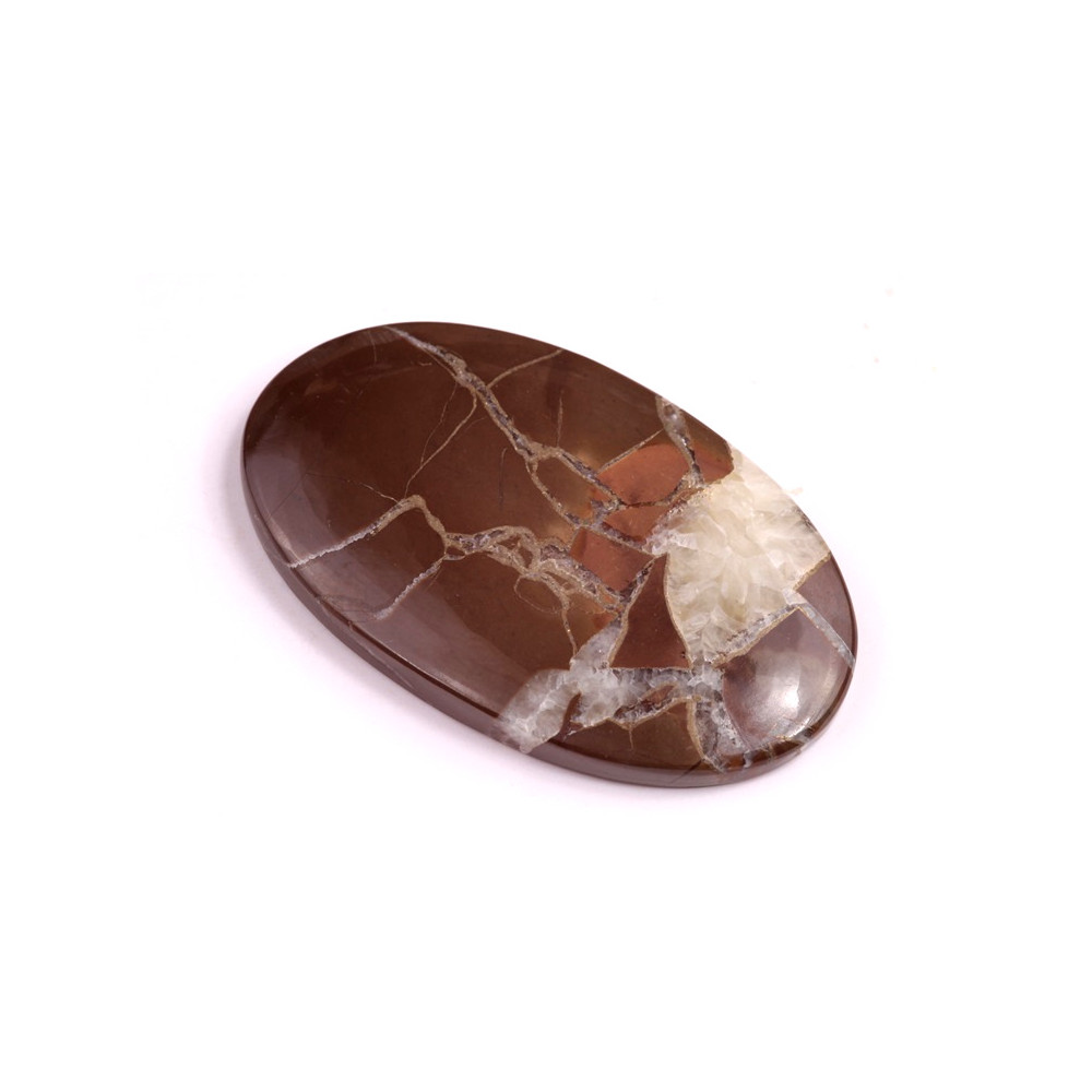 Pyrite Septarian kabošon je unikátní kámen, který kombinuje zlatavé inkluze pyritu s bohatými hnědými a béžovými tóny septarianu. Tento kámen je známý svou zajímavou strukturou připomínající praskliny či přírodní mozaiku, což mu dodává fascinující a nezaměnitelný vzhled.