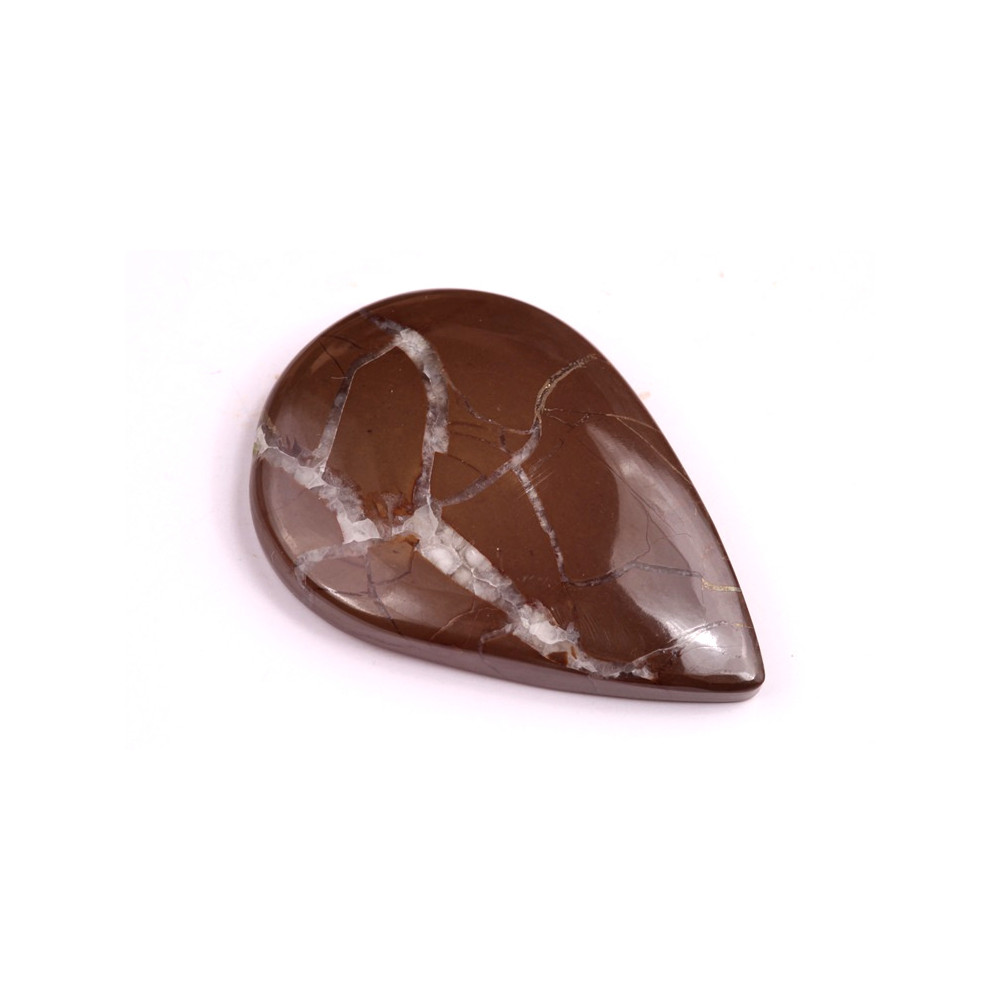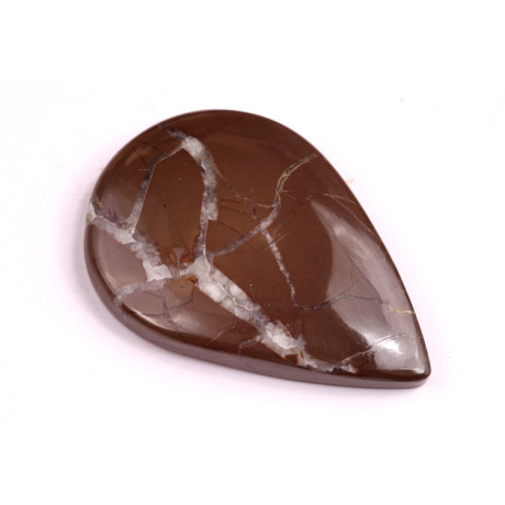 Pyrite Septarian kabošon je unikátní kámen, který kombinuje zlatavé inkluze pyritu s bohatými hnědými a béžovými tóny septarianu. Tento kámen je známý svou zajímavou strukturou připomínající praskliny či přírodní mozaiku, což mu dodává fascinující a nezaměnitelný vzhled.