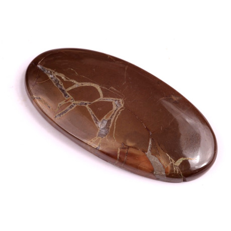 Pyrite Septarian kabošon je unikátní kámen, který kombinuje zlatavé inkluze pyritu s bohatými hnědými a béžovými tóny septarianu. Tento kámen je známý svou zajímavou strukturou připomínající praskliny či přírodní mozaiku, což mu dodává fascinující a nezaměnitelný vzhled.