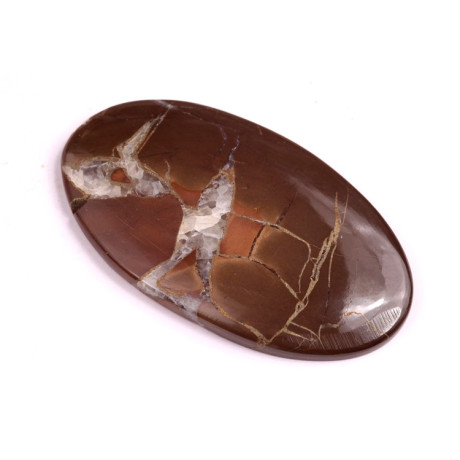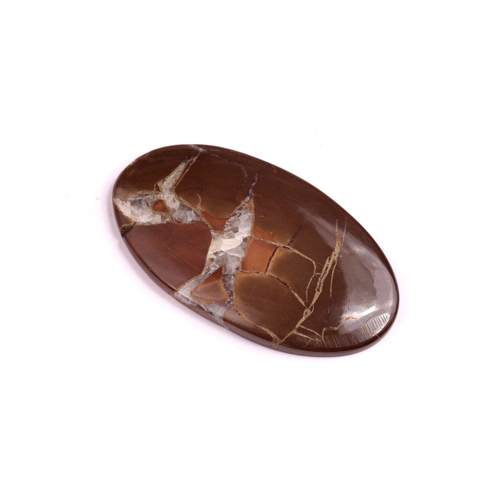 Pyrite Septarian kabošon je unikátní kámen, který kombinuje zlatavé inkluze pyritu s bohatými hnědými a béžovými tóny septarianu. Tento kámen je známý svou zajímavou strukturou připomínající praskliny či přírodní mozaiku, což mu dodává fascinující a nezaměnitelný vzhled.