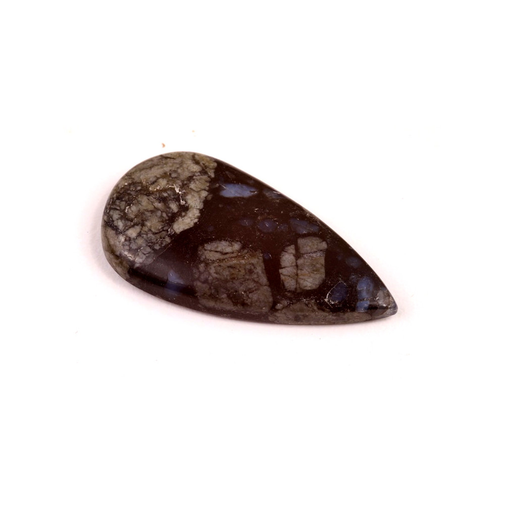 Kabošon z přírodního kamene Quesera je fascinující přírodní kámen, který zaujme svou barevnou kombinací hnědých a jemně modrých odstínů. Jeho kresba působí až malířsky, jako by byla inspirována poklidnou krajinou, v níž se prolínají zemité tóny s nebeskou modří. Tento kámen má nejen estetickou hodnotu, ale je také nositelem energie, která podporuje klid, harmonii a vyrovnanost, což je oblíbené mezi milovníky přírodních minerálů a šperkařských nadšenců.