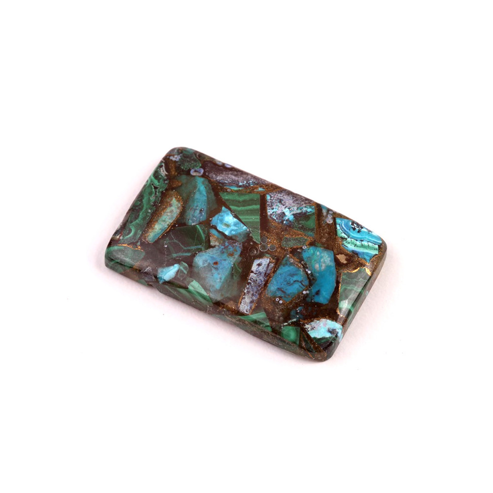 Kabošon Rekonstruovaný Malachit (Malachit, měď, pryskyřice) Velikost cca 36x32x6 mm Cena za 1...