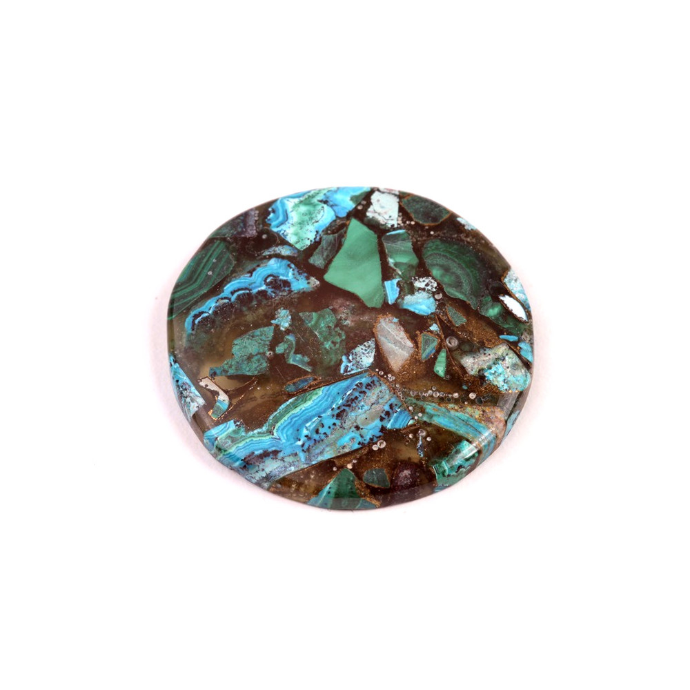 Kabošon Rekonstruovaný Malachit (Malachit, měď, pryskyřice) Velikost cca 36x32x6 mm Cena za 1...