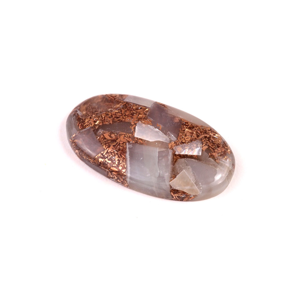 Kabošon Rekonstruovaný Moonstone (Měsíční kámen, měď, pryskyřice)