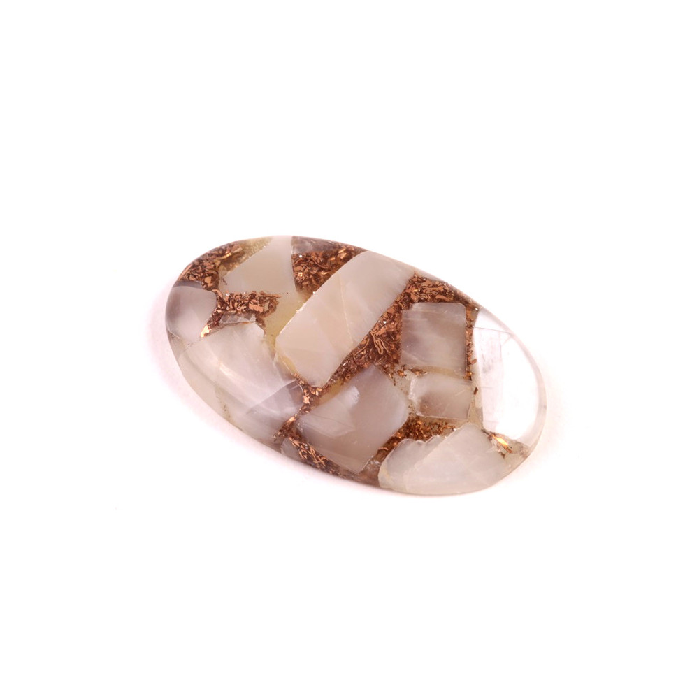 Kabošon Rekonstruovaný Moonstone (Měsíční kámen, měď, pryskyřice)
