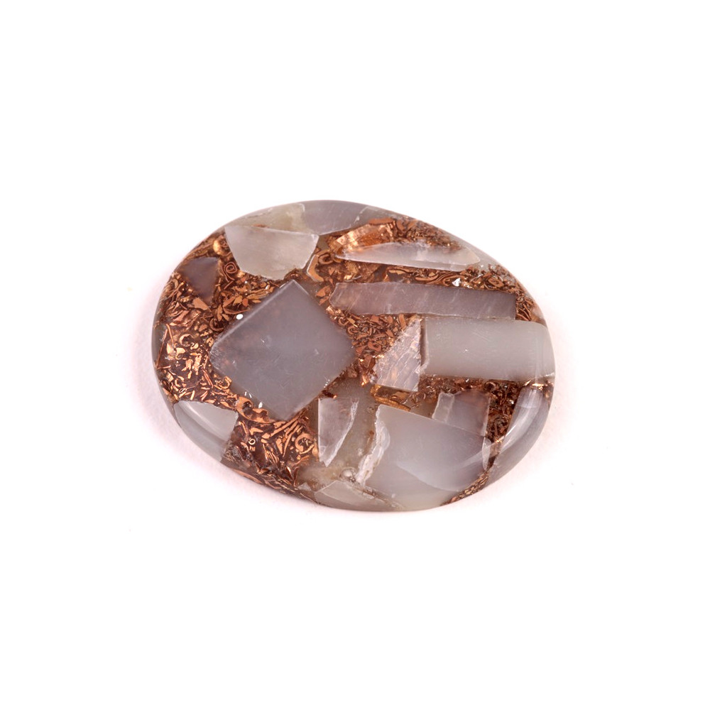 Kabošon Rekonstruovaný Moonstone (Měsíční kámen, měď, pryskyřice)