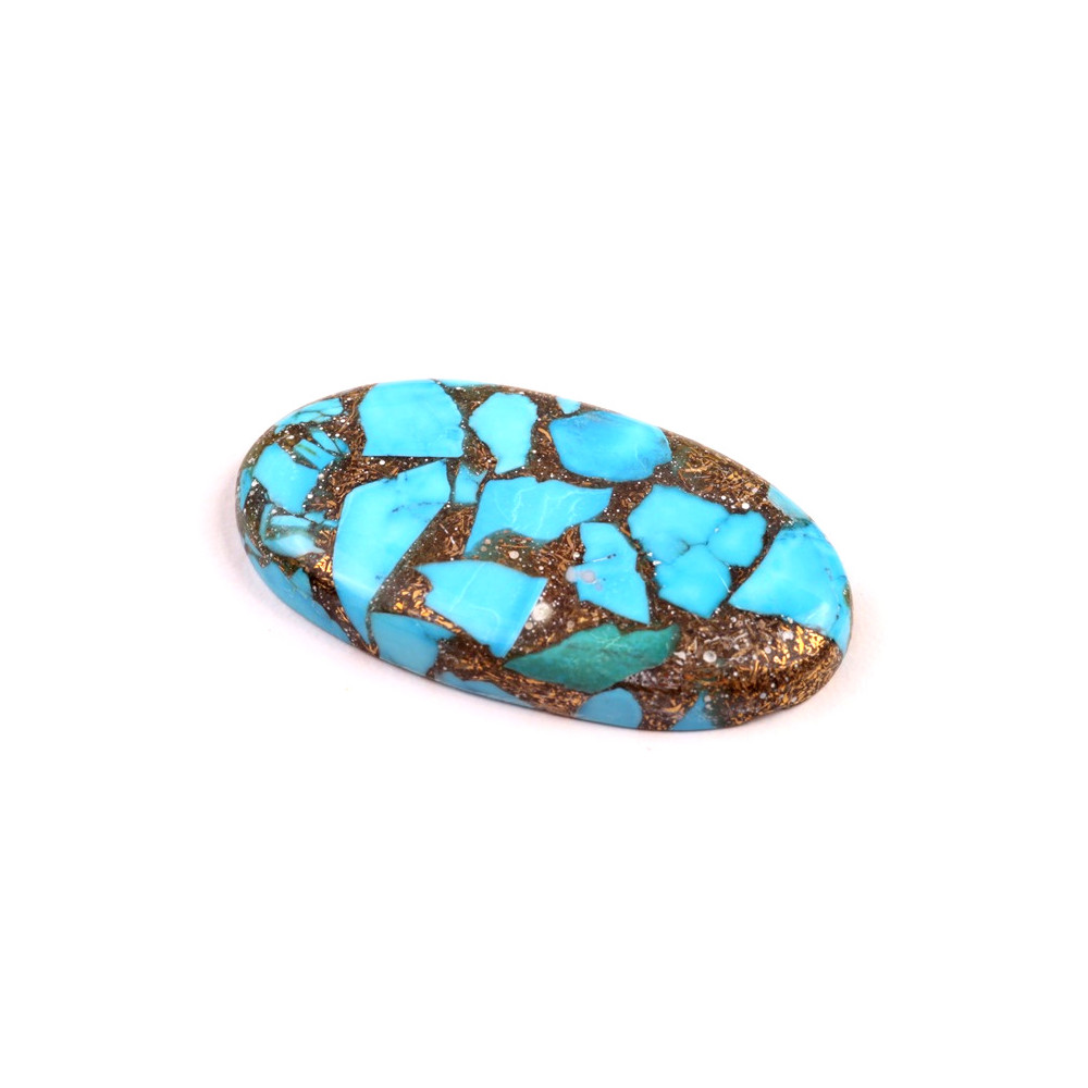 Kabošon Rekonstruovaný Tyrkys (Tyrkys, měď, pryskyřice) Velikost cca 36x18x6 mm Cena za 1 ks...
