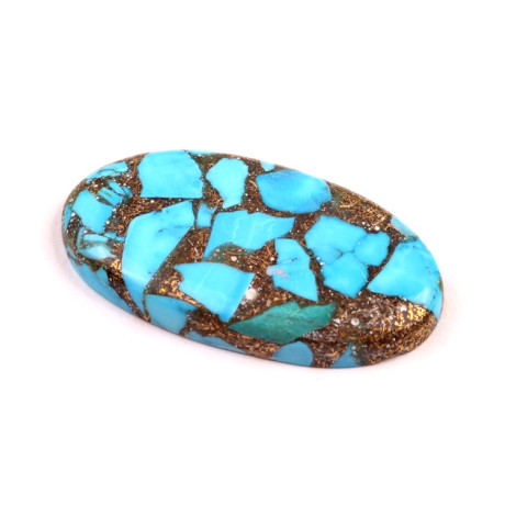 Kabošon Rekonstruovaný Tyrkys (Tyrkys, měď, pryskyřice) Velikost cca 42x23x6 mm Cena za 1 ks...