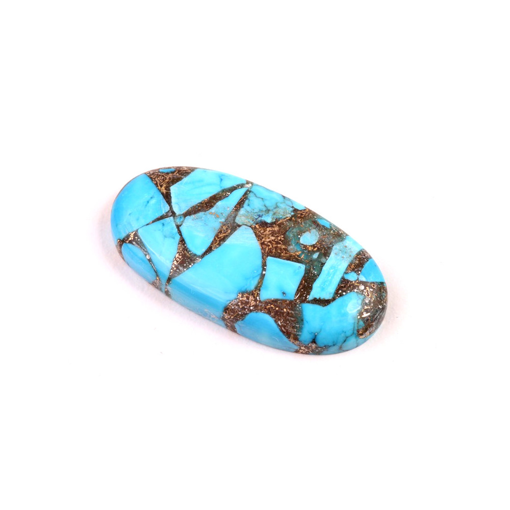 Kabošon Rekonstruovaný Tyrkys (Tyrkys, měď, pryskyřice) Velikost cca 41x23x6 mm Cena za 1 ks...