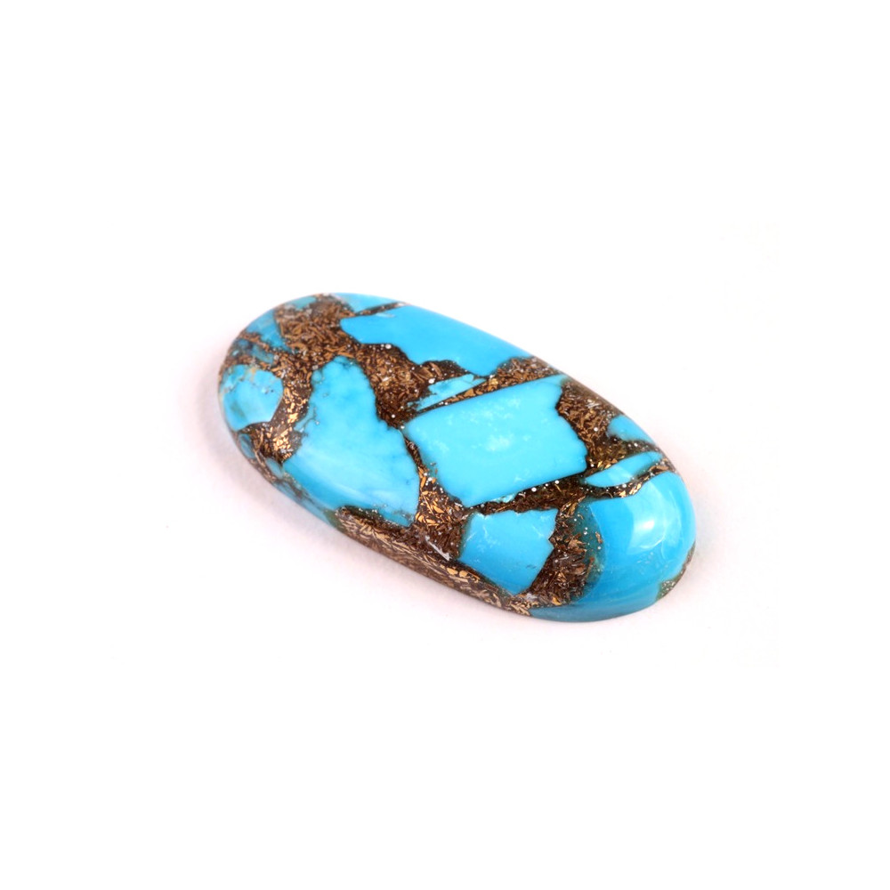 Kabošon Rekonstruovaný Tyrkys (Tyrkys, měď, pryskyřice) Velikost cca 39x19x6 mm Cena za 1 ks...