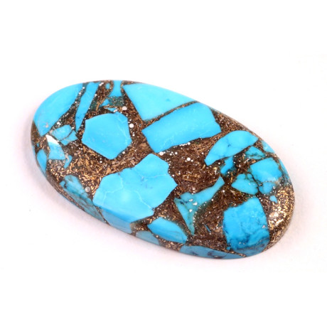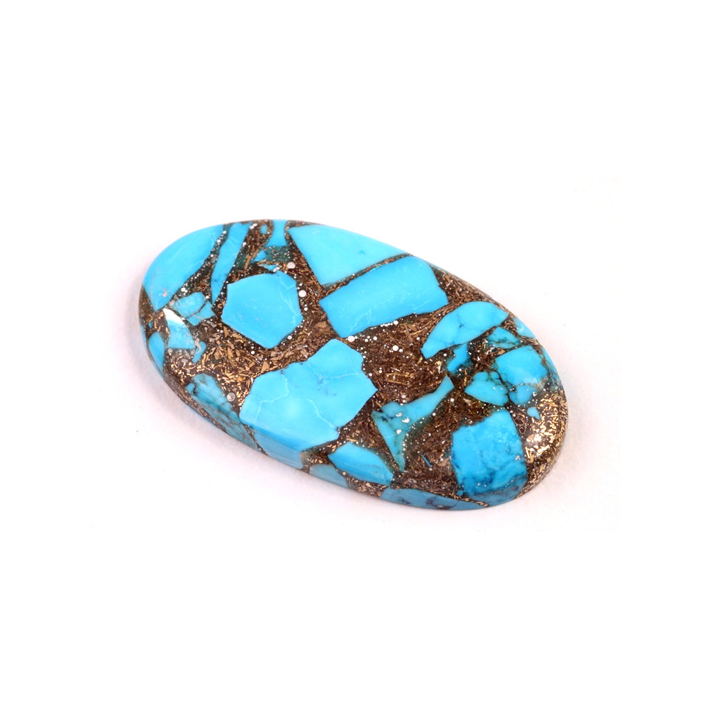 Kabošon Rekonstruovaný Tyrkys (Tyrkys, měď, pryskyřice) Velikost cca 39x19x6 mm Cena za 1 ks...