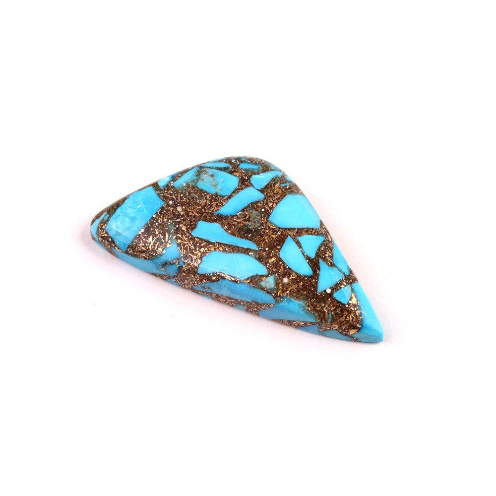Kabošon Rekonstruovaný Tyrkys (Tyrkys, měď, pryskyřice) Velikost cca 39x19x6 mm Cena za 1 ks...