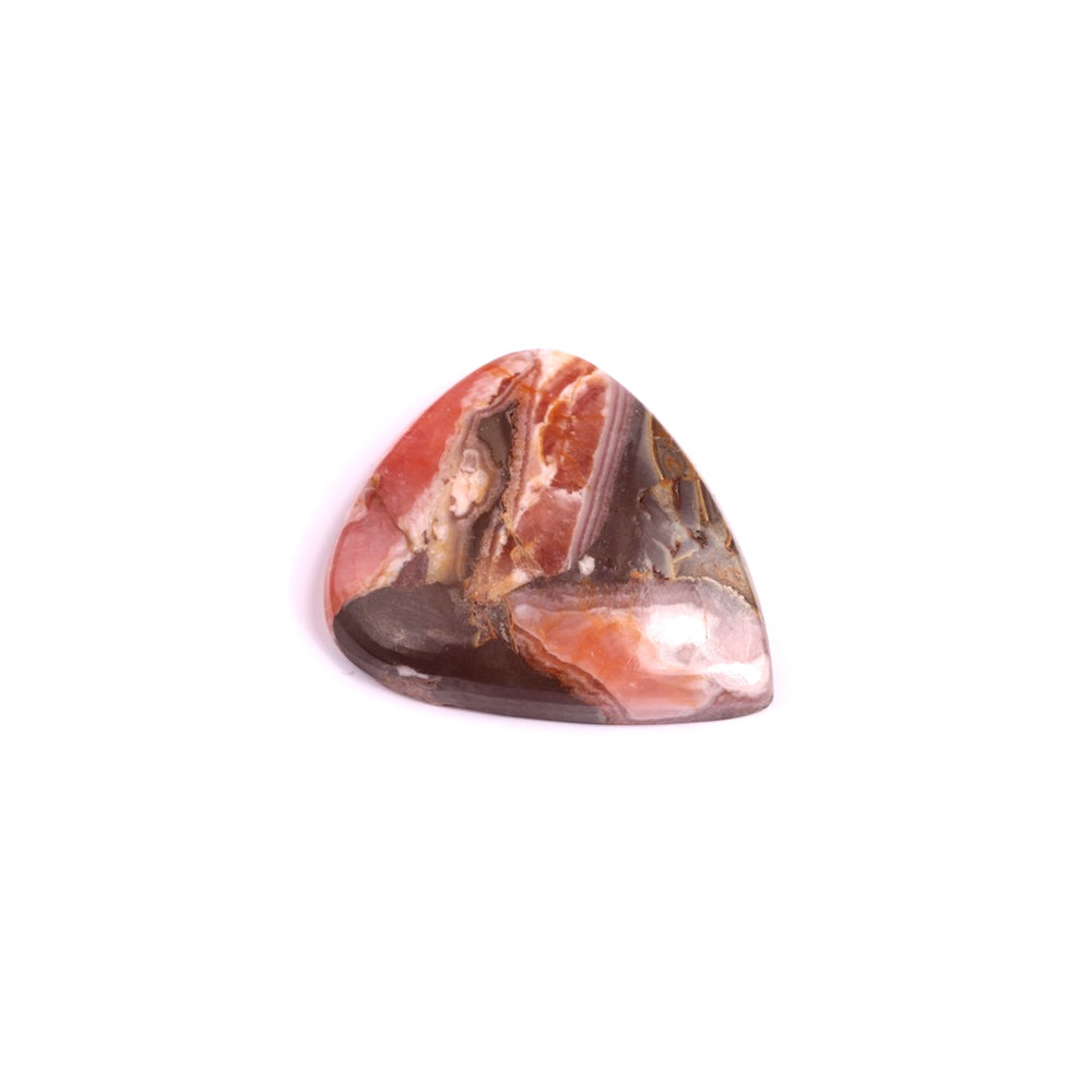 Rhodochrosite je ceněn pro svou spojitost s láskou a harmonií, zatímco přítomnost pyritu přidává dotek ochrany a síly. Tento kabošon je perfektní pro výrobu přívěsků nebo náhrdelníků, přičemž díky svému plochému zadnímu profilu je snadno použitelný v různých technikách, včetně wire-wrappingu a klasického osazení do kovových lůžek formou obcínování.