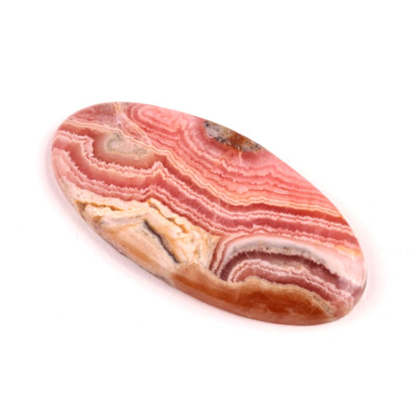 Kabošony z minerálu Rhodochrositu jsou nádherné drahokamy s jemně růžovou až sytě červenou barvou, často s bílými nebo šedými pásy, které přidávají na jejich unikátním vzhledu. Tento kámen je ceněn nejen pro svou estetickou krásu, ale také pro své symbolické a léčivé vlastnosti, které podporují lásku a emocionální uzdravení.