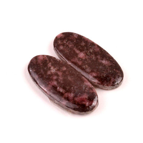 Párové kabošony z přírodního kamene Rhodonit Velikost jednoho kusu cca 28x15x4 mm Cena za 1 pár...