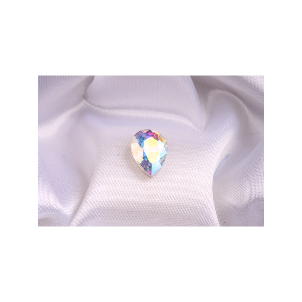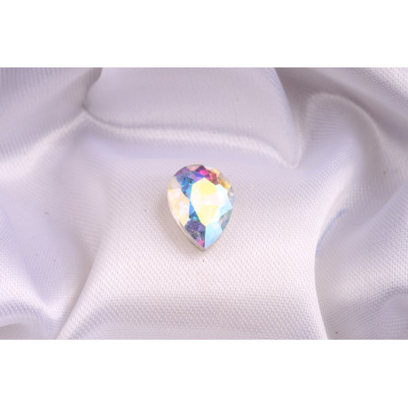 Korálky šaton kapka 14x10mm v barvě crystal AB - vhodná na obšití či nalepení.
