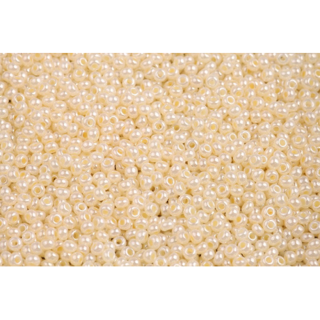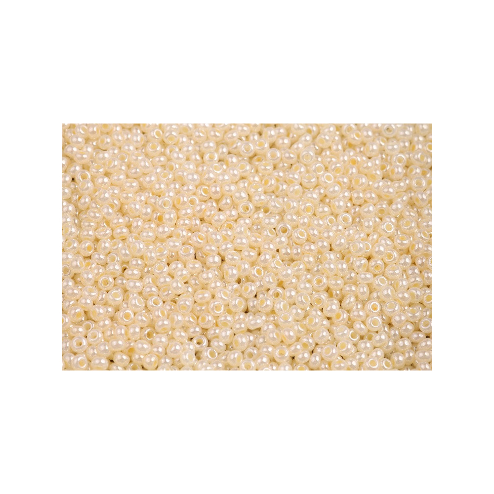 Krémová barva s perleťovým nádechem působí v hotových realizacích velmi elegantně a tvoří skvělý základ pro svatební i denní doplňky. Tento rokajl 10/0 krásně ladí se zlatou barvou, zatímco pro výrazný kontrast jej můžete zkombinovat s ametystově fialovou nebo využít bronzovou jako neutrální akcent. Takové barevné párování dodává šperkům hloubku a profesionální vzhled, který vynikne v ploše i v drobných detailech.
