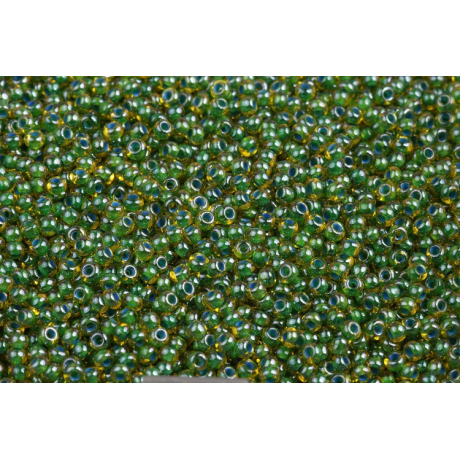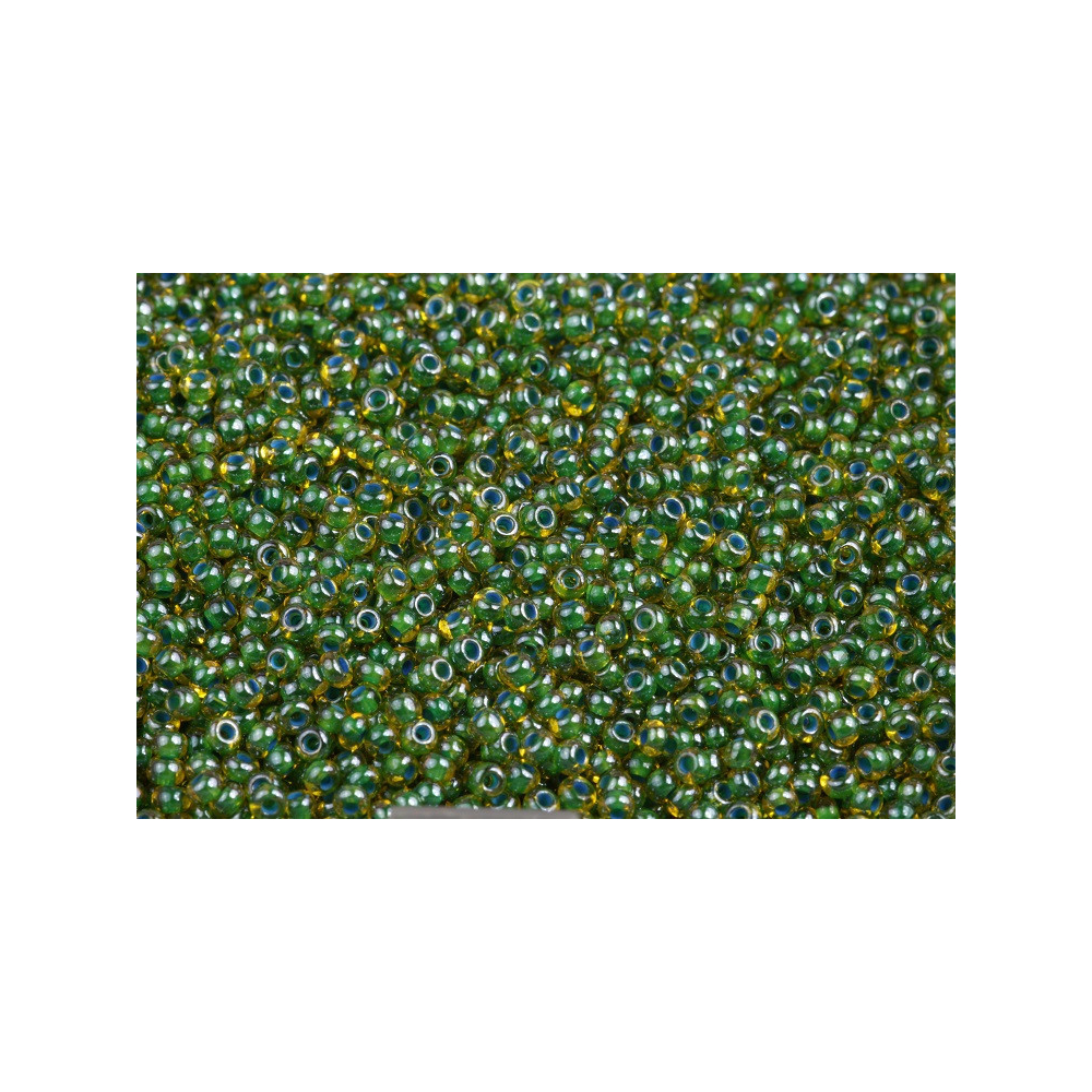 Zelená barva s vnitřním stříbrným průtahem definuje tento český rokajl Preciosa velikosti 10/0. S průměrem přibližně 2,3 mm a otvorem o velikosti 0,70 mm se jedná o jeden z nejuniverzálnějších rozměrů pro tradiční i moderní tvorbu, pro kterou jsou ideální korálkovací jehly velikosti 10-12. Tyto skleněné korálky vynikají hloubkou barvy díky kombinaci čirého skla a metalického jádra, což dodává hotovým šperkům luxusní odlesk.