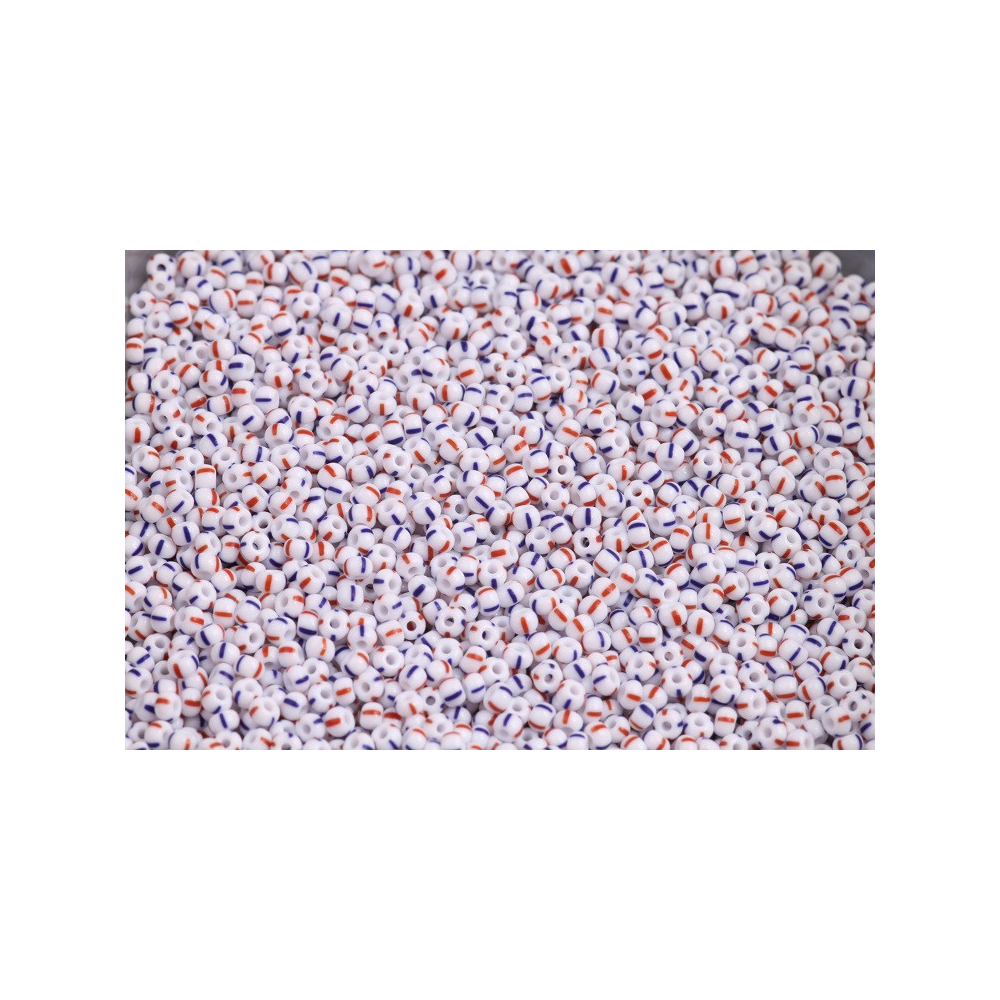 Bílá barva s jemným barevným akcentem v podobě červených a modrých proužků okamžitě evokuje tradiční lidové motivy nebo svěží námořnický styl. Představte si letní náramek, který hravě doplňuje vaše lněné šaty a jemně odráží denní světlo při každém vašem pohybu. Tento specifický rokajl Preciosa o velikosti 10/0 nabízí neotřelý vizuální charakter, který vynikne jak v jednoduchých víceřadých návlecích, tak ve složitějších kompozicích inspirovaných bohatou českou sklářskou tradicí.
