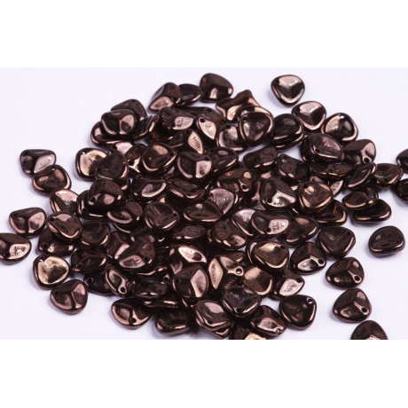 Bronzová barva s efektem Vega na černém podkladu (kód 23980/15726) vytváří fascinující vizuální hloubku, která se proměňuje podle úhlu dopadajícího světla. S rozměry 8 x 7 mm a otvorem pro průtah 0,8 mm se tyto korálky skvěle doplňují s japonským rokajlem nebo českými perličkami Preciosa velikosti 10/0 a 8/0. Jsou ideální volbou pro vytváření prostorových 3D květů, kde jejich asymetrie dodává šperku přirozený a organický vzhled.