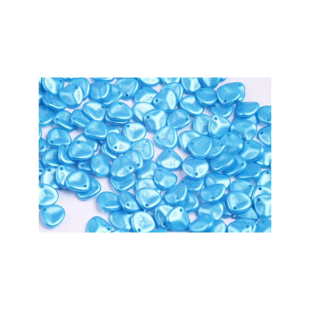 Světle modrá barva s jemným perleťovým odleskem definuje tyto skleněné korálky Rose Petal Beads o rozměru 8 x 7 mm. Na rozdíl od běžných plochých lístků nabízejí tyto ručně mačkané korálky od rodinné firmy Rutkovský specifické prohnutí, které dodává výslednému šperku hloubku a realističnost. Tradiční české sklářství se zde snoubí s precizním zpracováním, které zajišťuje hladký povrch a rovnoměrný průtah o velikosti 0,8 mm pro snadné navlékání.