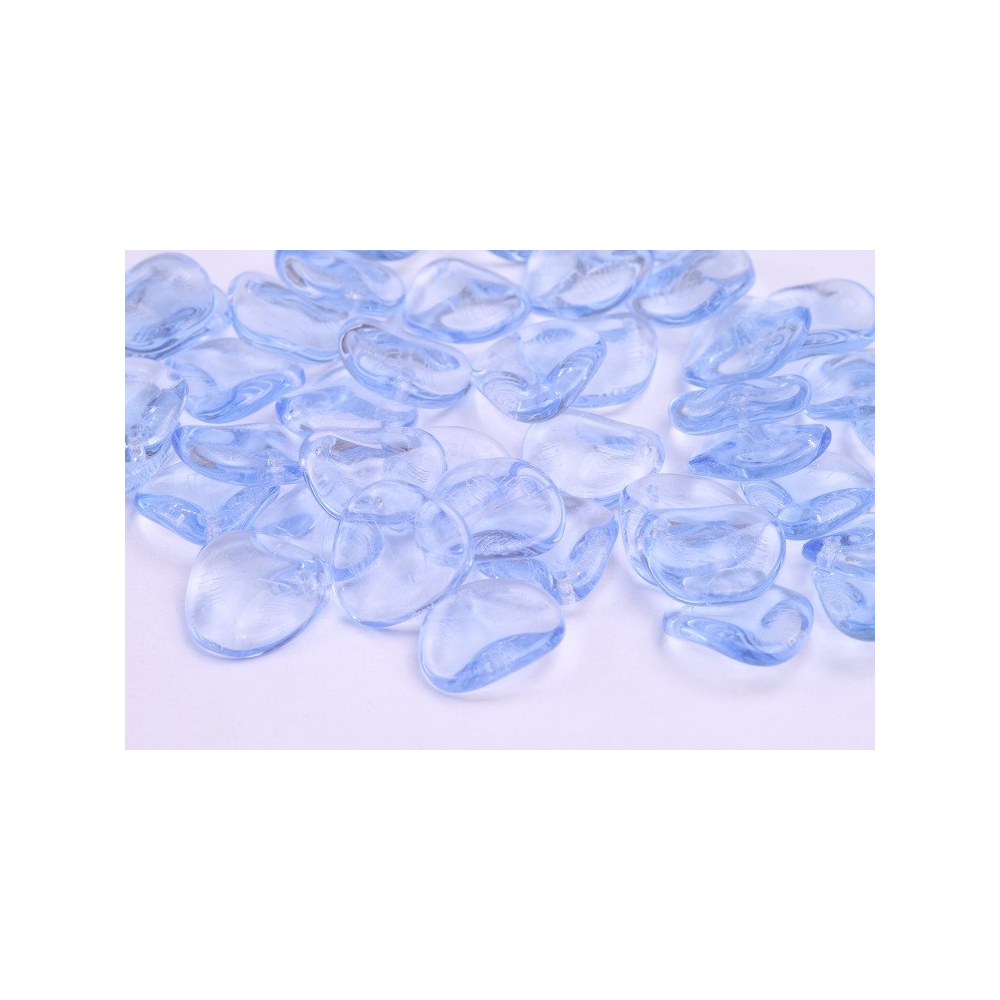 Světle modrá barva připomínající čistou hladinu jezera dodává těmto skleněným korálkům Rose Petal Beads neopakovatelný nádech křehkosti. Právě tento specifický tvar okvětního lístku o rozměru 14 x 13 mm umožňuje vytvářet bohaté prostorové květy, které vypadají jako živé. Při dopadu světla na průhledné sklo vynikne jemné modelování povrchu, které je výsledkem precizního zpracování a tradičního přístupu k materiálu.