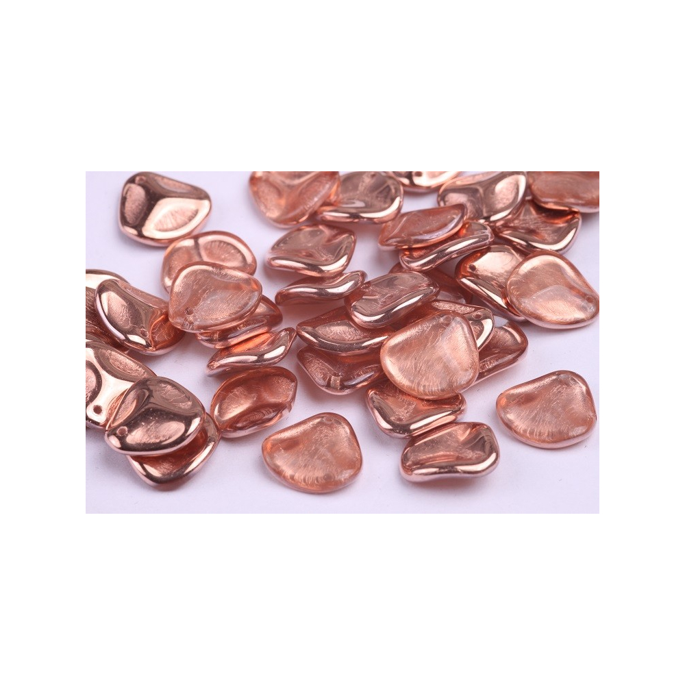 Rose gold odlesky a organický tvar okvětního lístku definují tyto exkluzivní skleněné korálky z dílny rodinné firmy Rutkovský, Česká republika. Ručně mačkané Rose Petal Beads o rozměru 14 x 13 mm přinášejí do světa bižuterie jemnost přírody v kombinaci s luxusním kovovým povrchem. Každý kus odráží tradici českého sklářství, která se v tomto tvaru snoubí s moderními barevnými trendy pro náročné designéry.